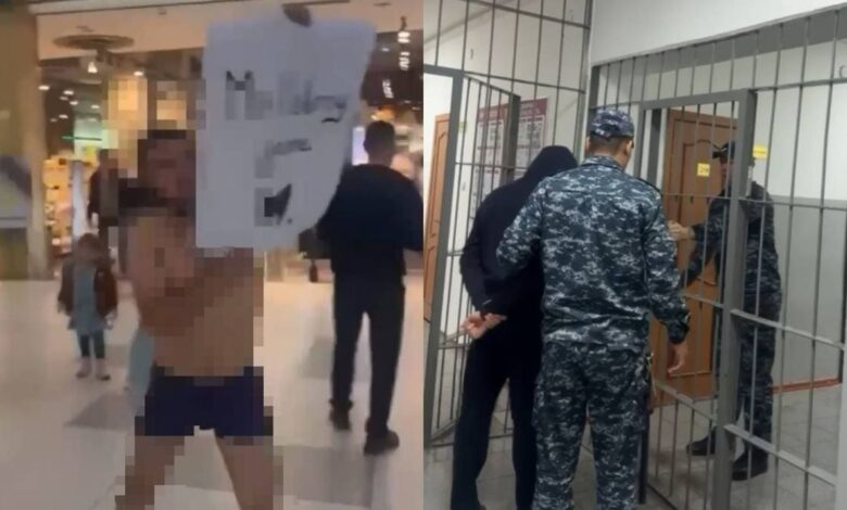 В ходе мониторинга социальных сетей сотрудниками полиции была выявлена видеозапись, на которой мужчина в полуобнаженном виде бегал по территории одного из торгово-развлекательных центров столицы с плакатом, привлекая внимание посетителей и нарушая общественный порядок.
