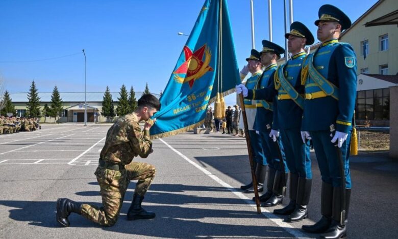 В Астане солдаты, призванные прошлой весной, попрощались с боевым знаменем